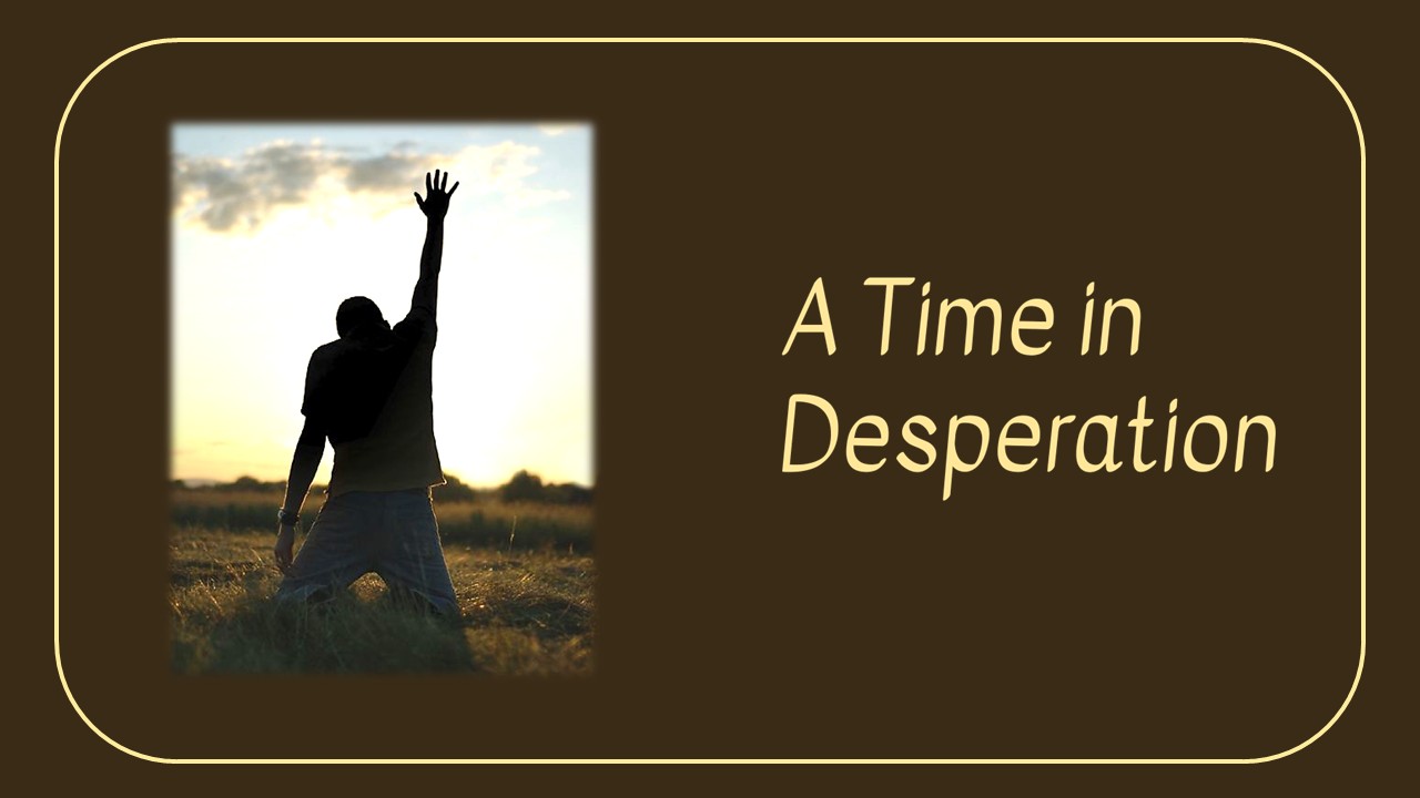 Have you ever felt so overwhelmed that you thought your life was slipping away? Have you ever been so far disconnected that you could not see a way out? Have you wondered who or what could make things better or change the circumstances? If you can answer YES to any of these questions, you have looked desperation right in the face.